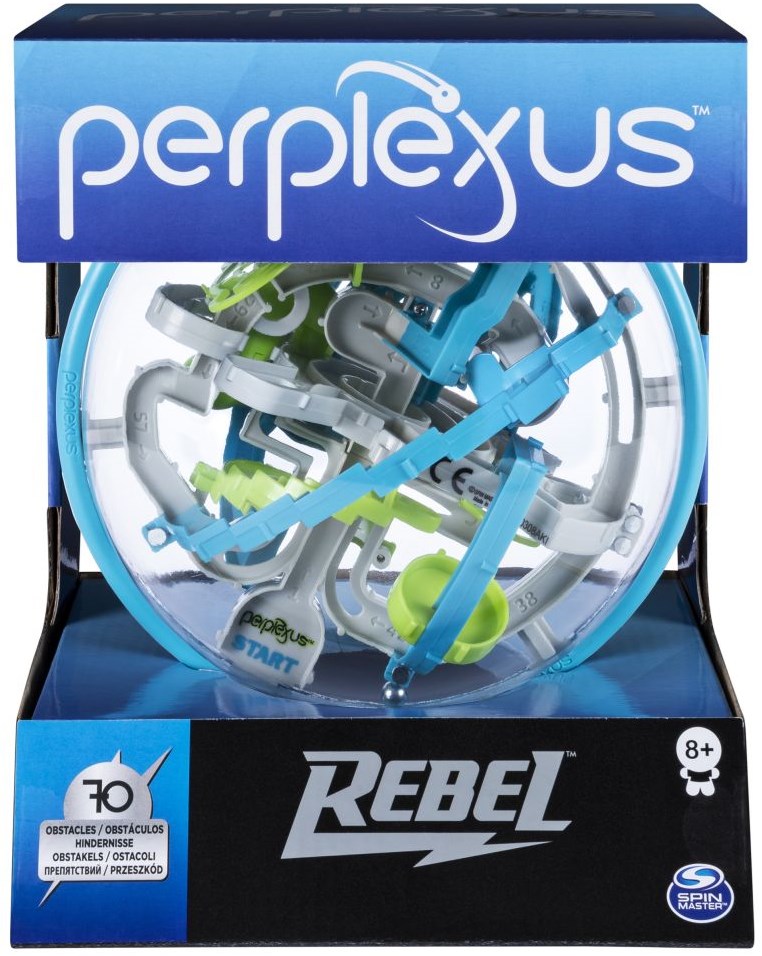 Met de breinbreker Perplexus Rebel van Spin Master beleef je urenlang puzzelplezier! Dit 3D-doolhofspel daagt je uit om de knikker langs maar liefst 70 spannende obstakels te leiden. Draai en kantel de bol in alle richtingen en probeer het parcours te voltooien zonder dat de bal valt. Ben je gevallen? Geen probleem, begin gewoon opnieuw en ontdek steeds nieuwe routes en slimme trucjes!