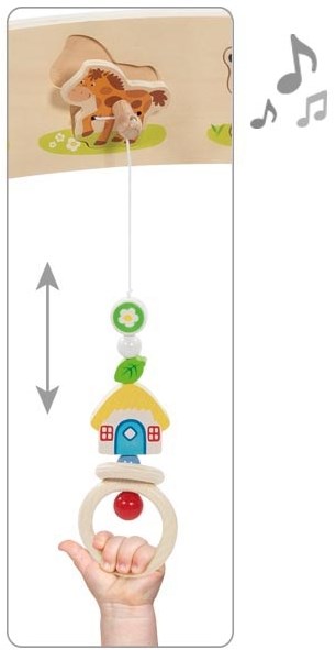 Tirez sur les différents éléments et découvrez ensemble les sons réalistes des animaux de la ferme. Jouer devient ainsi amusant et instructif ! Le baby gym est solide, sûr et fabriqué en bois durable, pour des heures de jeu en toute sécurité.